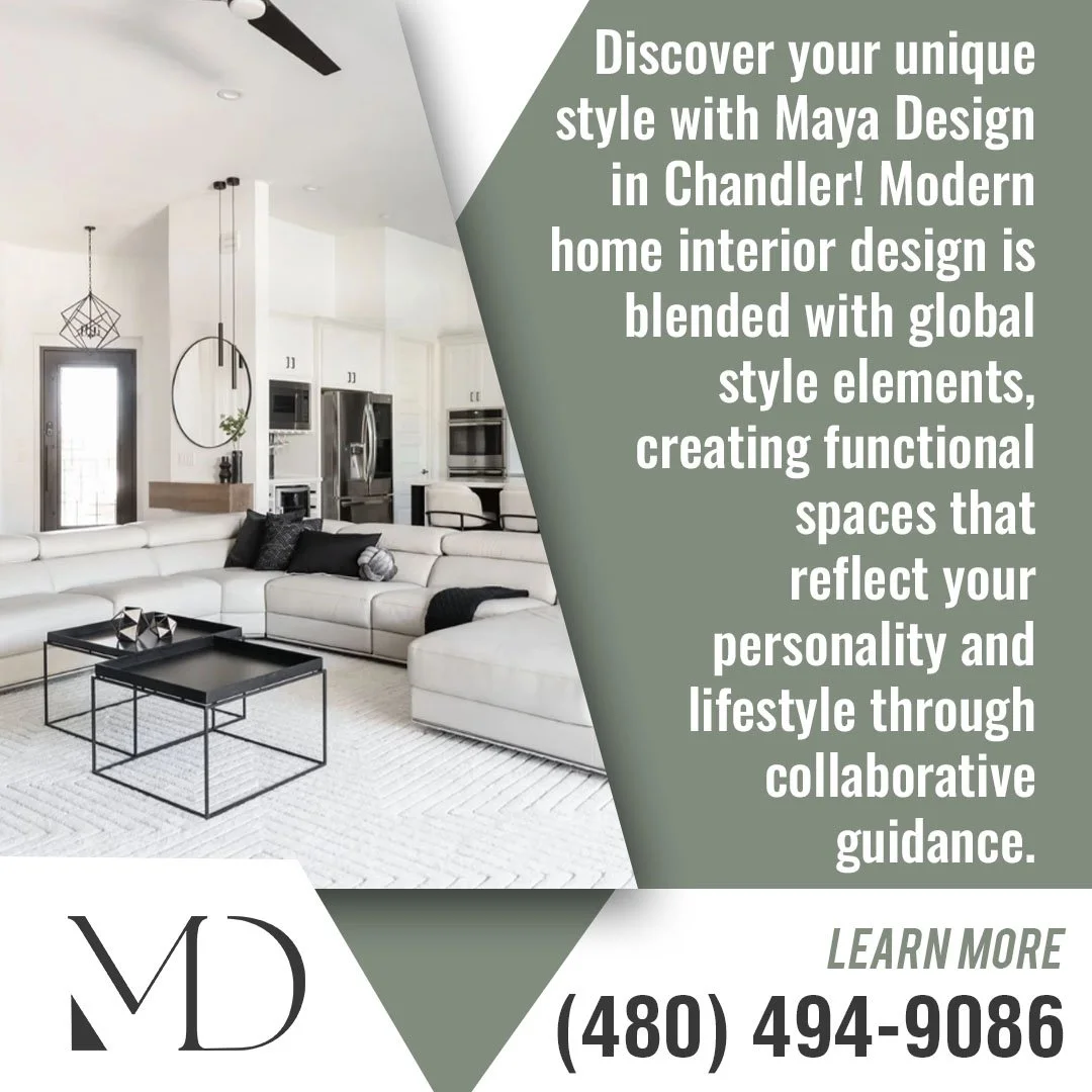 At Maya Design, located in Chandler, AZ, we work with homeowners to combine global style interior design with modern principles. The result is a home that feels elegant, comfortable, and distinctly yours, reflecting both your personal story and functional needs.